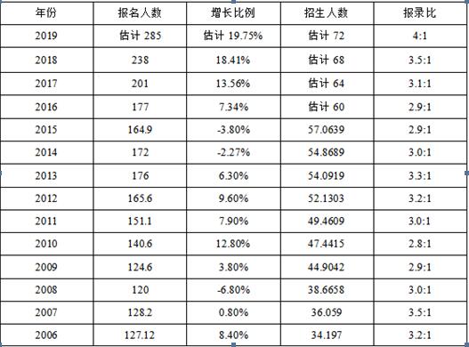 從上面的數(shù)據(jù)可以明顯看到,2018考研形勢(shì)不容樂(lè)觀。從1978年恢復(fù)研究生招生,2005年報(bào)名人數(shù)首次突破100萬(wàn),2017年首次突破200萬(wàn)。2017首次開(kāi)始實(shí)施全日制和非全日制研究生招生考試依據(jù)國(guó)家統(tǒng)一要求進(jìn)行招生,導(dǎo)致2017年報(bào)考人數(shù)明顯增加。今年是全日制和非全日制統(tǒng)一考試的第二年,加上2017年的二戰(zhàn)考生導(dǎo)致今年考研人數(shù)增幅仍然較高,而近幾年招生人數(shù)增長(zhǎng)比例穩(wěn)定在6%左右。今年報(bào)考人數(shù)增長(zhǎng)比例幾乎是招生人數(shù)增長(zhǎng)比例的三倍這勢(shì)必導(dǎo)致考研難度上升。