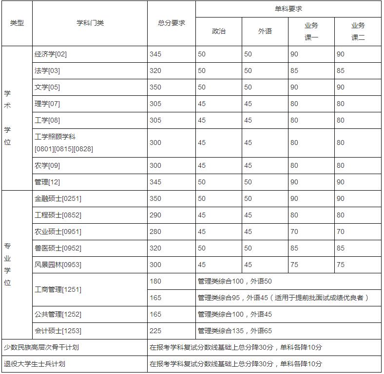根據(jù)教育部《2019年全國碩士研究生招生工作管理規(guī)定》文件精神,結(jié)合我校實際情況,經(jīng)學(xué)校研究生招生領(lǐng)導(dǎo)小組研究決定,2019年碩士研究生入學(xué)考試復(fù)試基本線如下: