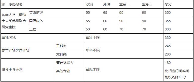 東南大學(xué)2019年碩士研究生復(fù)試基本線院校動態(tài)