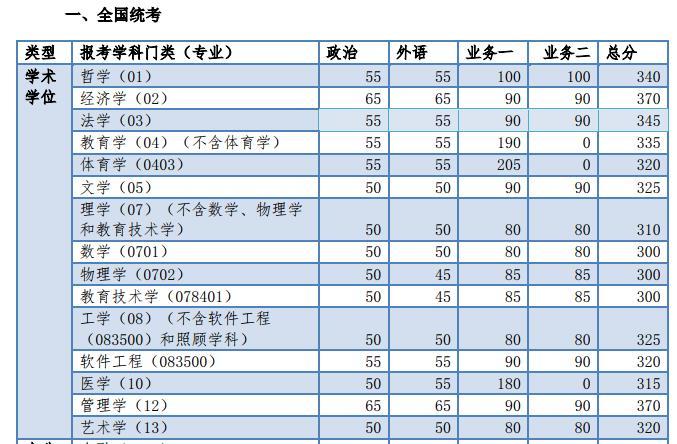 1. 政治理論、外國語滿分為 100 分,業(yè)務課滿分為 150 分(管理類綜合能力滿分為 200 分,教育 學、醫(yī)學門類的業(yè)務課滿分為 300 分)。
