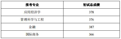 3. 凡報考我院應(yīng)用經(jīng)濟學(xué)、管理科學(xué)與工程、金融、國際商務(wù)專業(yè),初試成績符合我校復(fù)試基本分數(shù)線且總分達到以下要求者,方具有復(fù)試資格: