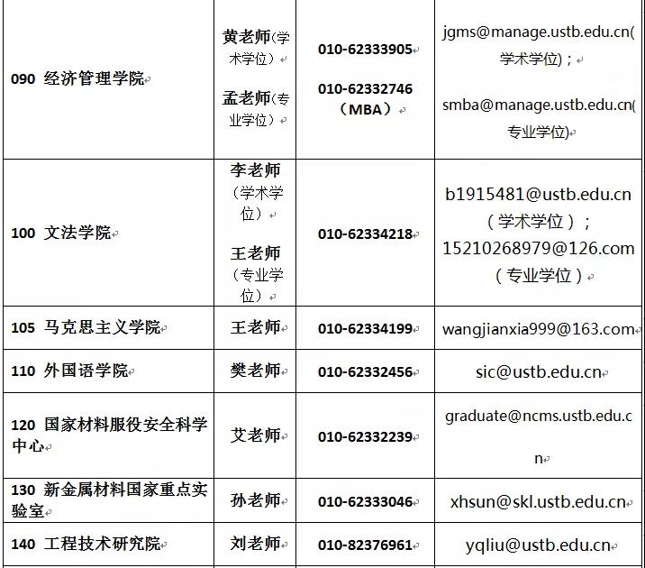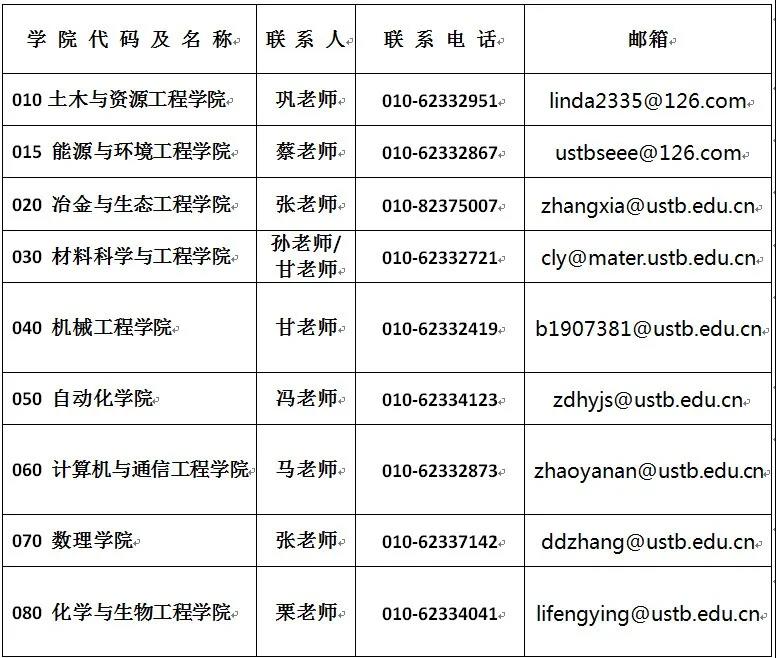 疫情防控非常時(shí)期,現(xiàn)場咨詢暫停,考生可通過電話或電子郵件方式進(jìn)行咨詢,研招辦電話為010-62332484,郵箱為yzb@ustb.edu.cn;各培養(yǎng)單位咨詢電話及郵箱附后。我們將盡力做到及時(shí)回復(fù)郵件,如個(gè)別郵件回復(fù)不及時(shí),敬請(qǐng)諒解。
