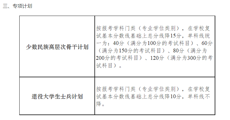 1.參加“大學(xué)生志愿服務(wù)西部計劃”“三支一扶計劃”“農(nóng)村義務(wù)教育階段學(xué)校教師特設(shè)崗位計劃”“赴外漢語教師志愿者”等項目服務(wù)期滿、且考核合格的考生,3年內(nèi)參加全國碩士研究生招生考試的,初試總分加10分,同等條件下優(yōu)先錄取。
