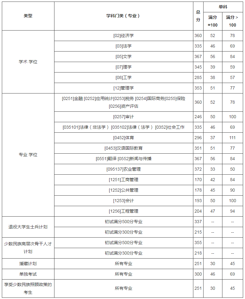 西南財經大學2022年碩士研究生招生考試考生進入復試基本成績要求