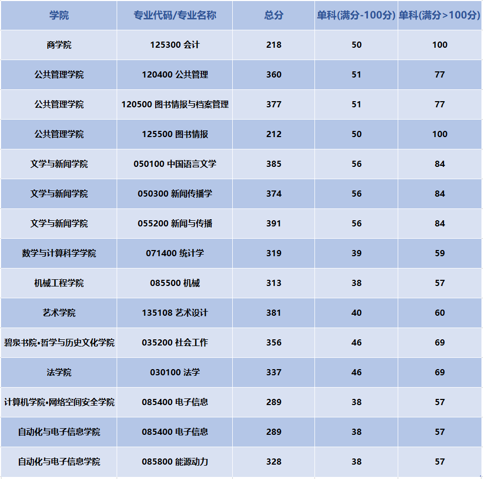 2其余專業(yè)均執(zhí)行教育部《2022年全國碩士研究生招生考試考生進入復試的初試成績基本要求》A類地區(qū)對應的復試分數基本線。
