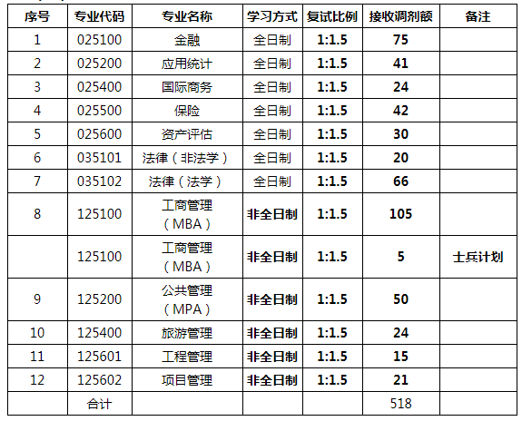 (六)第一志愿報考工商管理、公共管理、旅游管理、會計、圖書情報、工程管理、項目管理、物流工程與管理和審計專業(yè)學位碩士的考生,在滿足調入專業(yè)報考條件、且初試成績同時符合調出專業(yè)和調入專業(yè)在調入地區(qū)的全國初試成績基本要求的基礎上,可申請相互調劑,但不得調入其他專業(yè);其他專業(yè)考生不得調入以上9個專業(yè)。