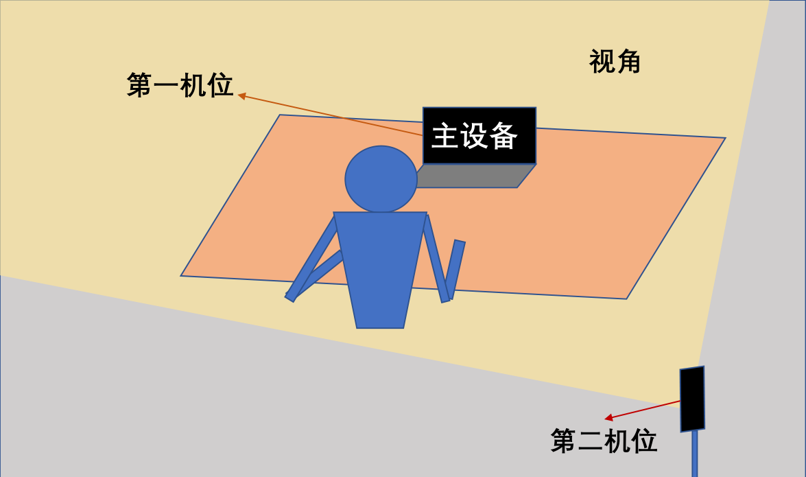 3.考生面試時(shí),全程正面免冠朝向攝像頭,保持坐姿端正,保證頭肩部及雙手出現(xiàn)在視頻畫面正中間??忌鷱?fù)試應(yīng)開啟兩臺(tái)設(shè)備攝像頭,主機(jī)位設(shè)備攝像頭對(duì)準(zhǔn)考生本人(視角如圖1所示),輔機(jī)位設(shè)備攝像頭從考生側(cè)后方45°拍攝,要保證從考生面前和身后完整拍攝到考生全身、考生考試屏幕能清晰地被復(fù)試專家組看到(視角如圖2所示)。