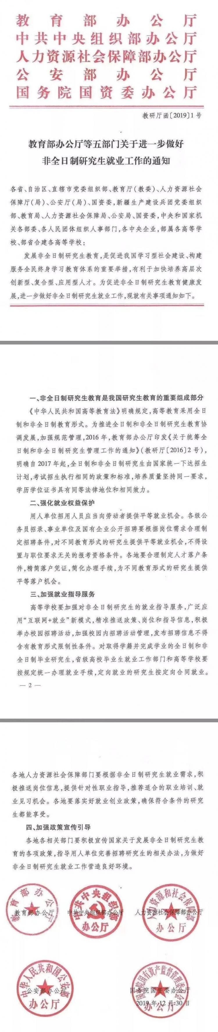 現(xiàn)在是非常時(shí)期,各部門工作都收到了影響,此時(shí)五部門聯(lián)合下發(fā)重磅文件,可以認(rèn)為是國(guó)家層面對(duì)非全日制研究生獲取公平就業(yè)機(jī)會(huì)的最好支持。